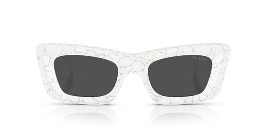 نظارة شمسية برادا باللون الأبيض الرخامي غير اللامع والرمادي الداكن | برادا PR 13ZS أبيض رخامي غير لامع - رمادي غامق