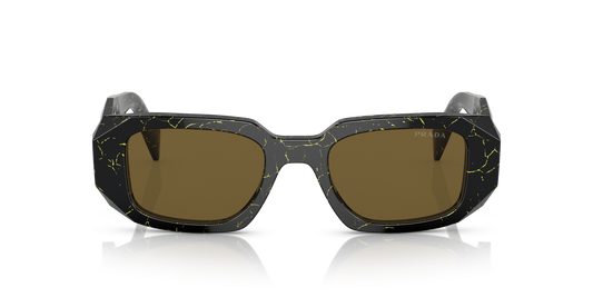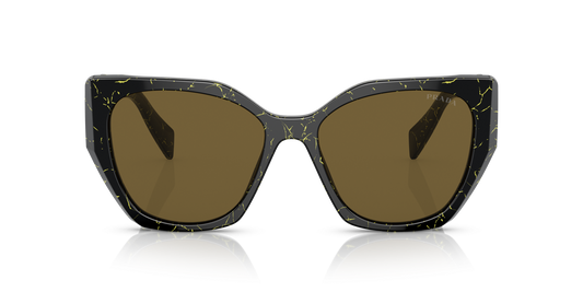 نظارات شمسية برادا باللون الأسود/الأصفر الرخامي-البني الداكن | برادا PR 19ZS أسود/أصفر رخامي-بني غامق