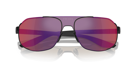 نظارات شمسية فيراغامو لينيا روسا باللون الأسود والأحمر والأزرق اللامع | برادا لينيا روسا PS 53YS أسود مطفي-أحمر أزرق مرآة
