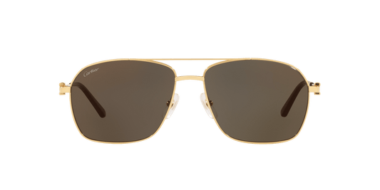 نظارات شمسية كارتييه باللون الذهبي البني اللامع | كارتييه CT0062S ذهبي بني لامع