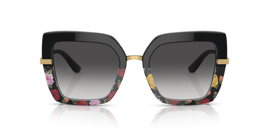 نظارات شمسية دولتشي آند غابانا سوداء بطبعة زهور شتوية - لون أسود رمادي | دولتشي آند غابانا DG4373 أسود على طبعة زهور الشتاء - رمادي متدرج أسود