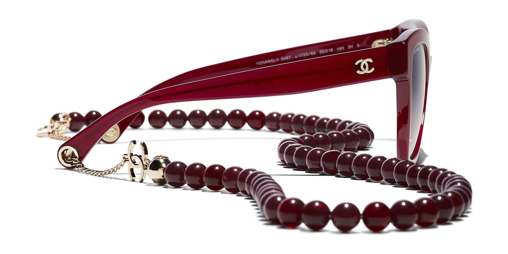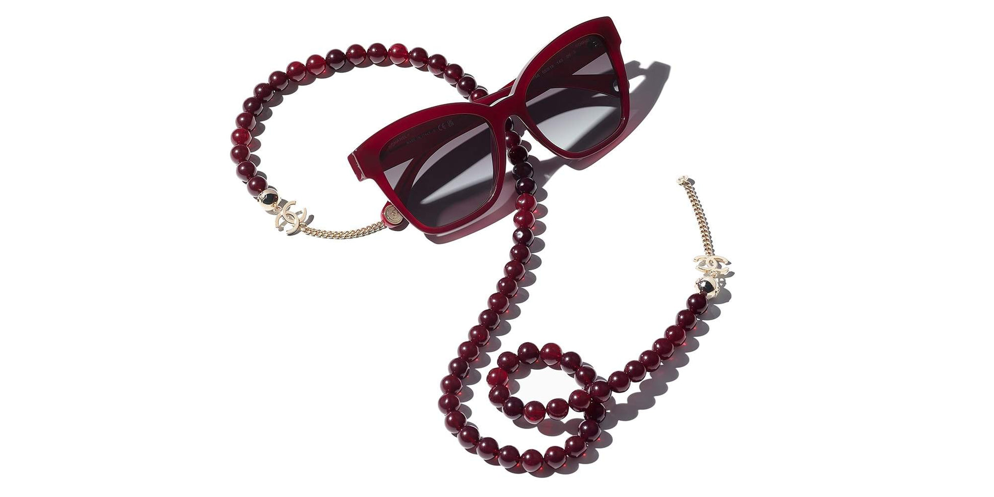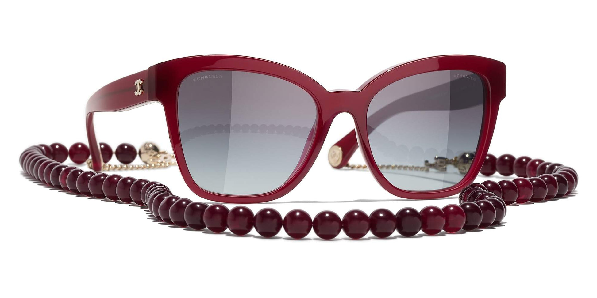 نظارة شمسية شانيل باللون العنابي والرمادي الذهبي | نظارة شمسية شانيل مربعة CH5487 باللونين العنابي والرمادي الذهبي