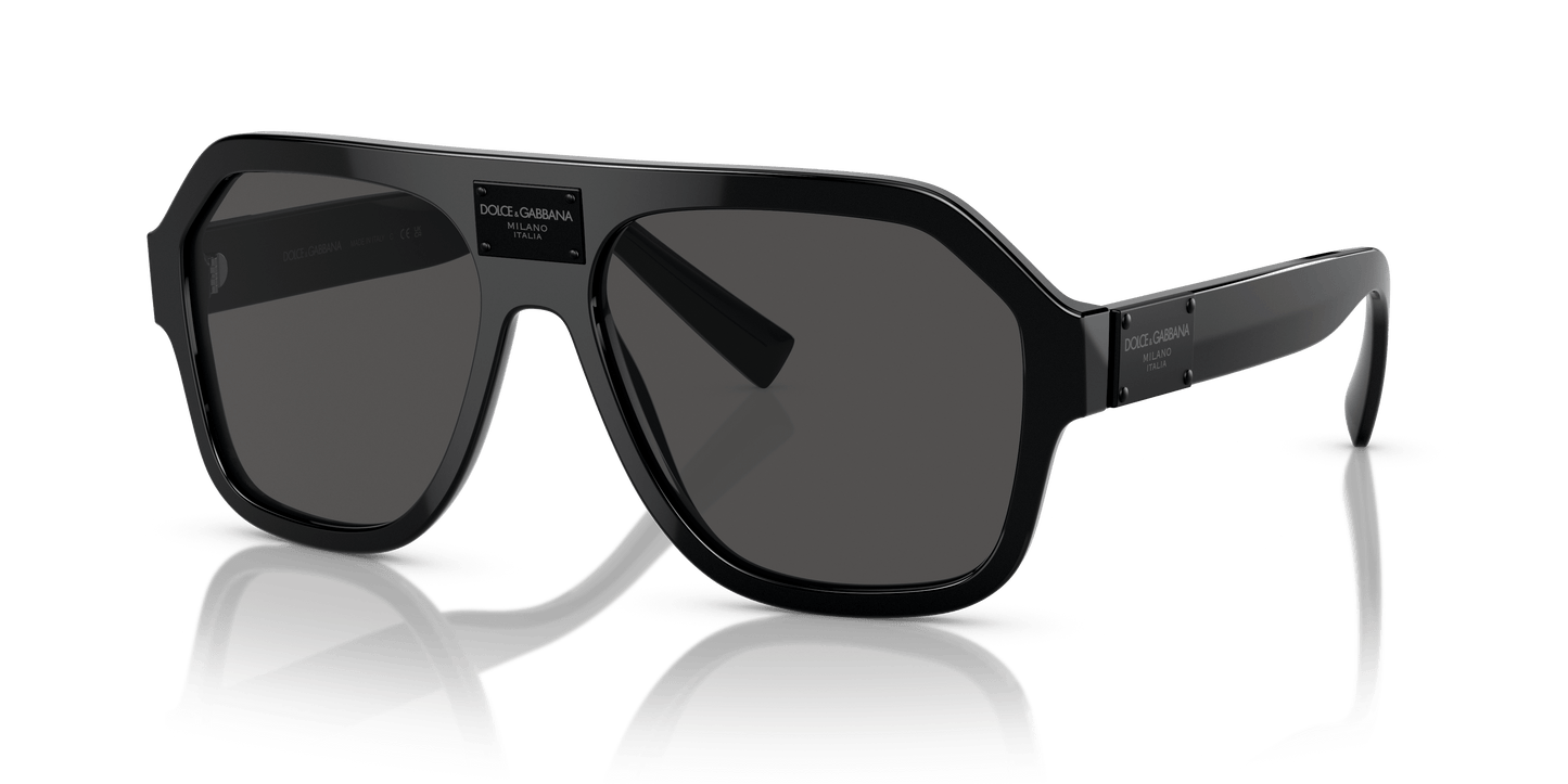 Meet the Dolce&Gabbana DG4433 sunglasses, a perfect blend of style and sophistication. The solid dark grey lenses, combined with the black pilot frame made of premium acetate material exude timeless elegance. Elevate your everyday look with these shades that seamlessly blend contemporary aesthetics and artisan craftsmanship.