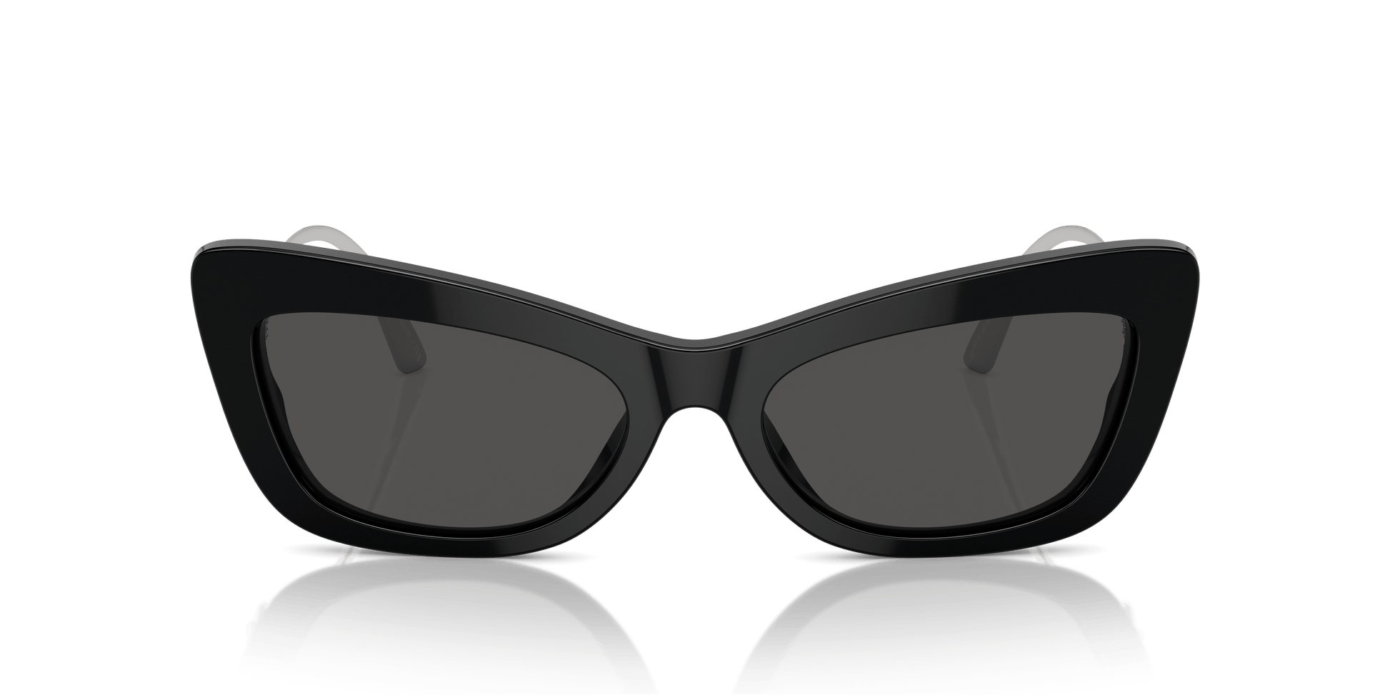 Elevate your style with the Dolce&Gabbana DG4467B sunglasses. The solid dark grey lenses and black frame create a captivating contrast, while the iconic cat-eye shape adds an extra touch of allure to this exquisite design. Elevated by the addition of stress on these sunglasses, these frames showcase timeless elegance and sophistication for a truly luxurious statement.
