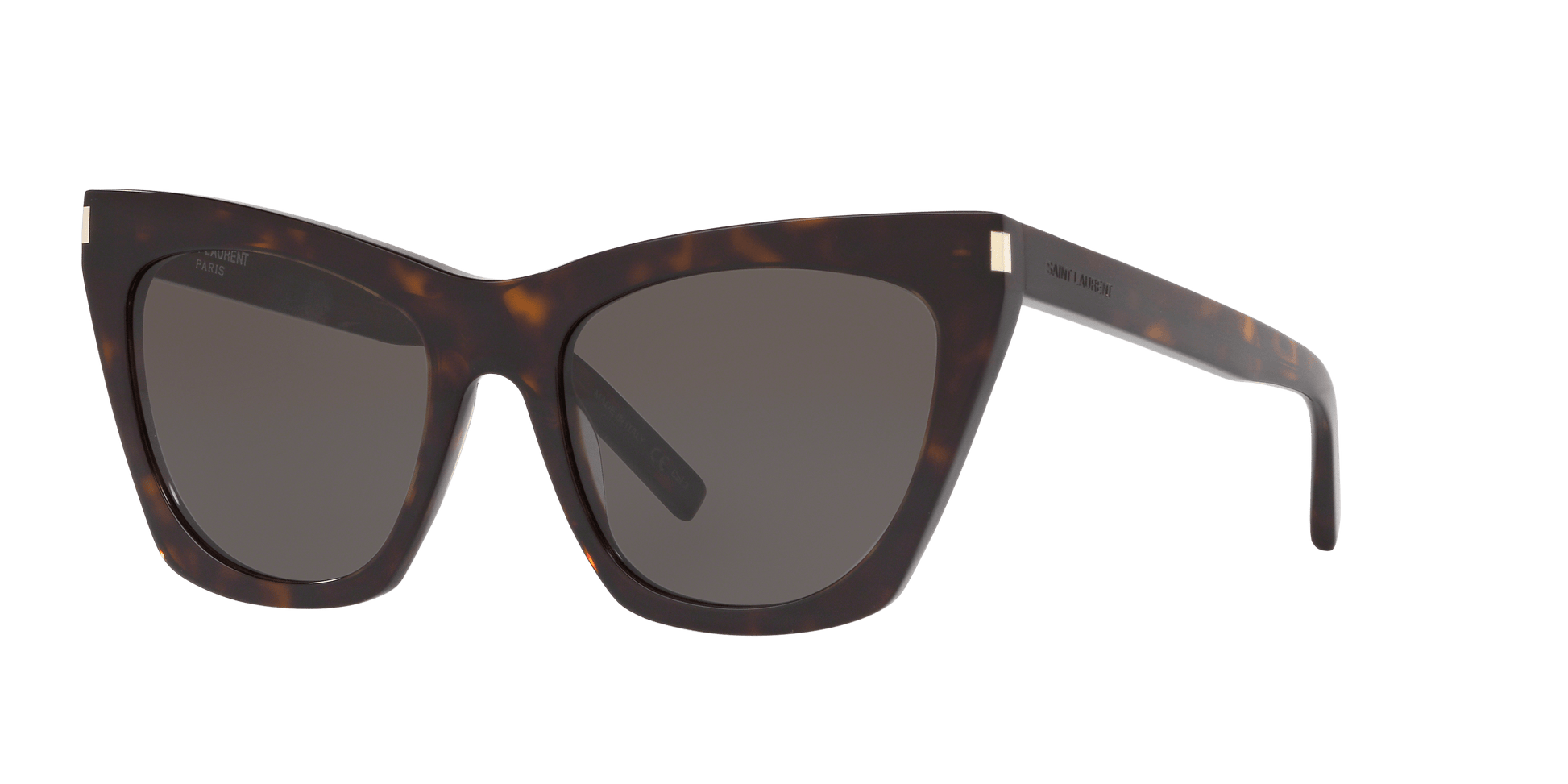 Meet the Saint Laurent SL 214 Kate, a modern interpretation of the iconic cat-eye frame. Crafted from premium materials in tortoiseshell with gray lenses, this style offers both comfort and style. These shades are enhanced by a solid gray lens treatment and rich tortoiseshell color, designed to make a statement wherever you go.