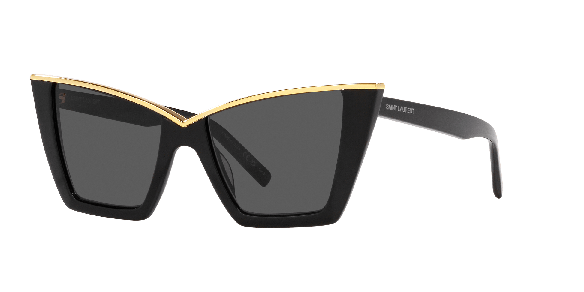 A unique blend of vintage charm and contemporary sophistication make the Saint Laurent SL 570 sunglasses a coveted accessory. The solid black lenses exude elegance, while the iconic cat-eye frame shape adds a touch of retro flair. Crafted from high-quality materials, these frames are guaranteed to turn heads wherever you go. Elevated by their refined craftsmanship and timeless appeal, this style seamlessly blends aesthetics of past and present for an effortlessly cool look that never goes out of style.