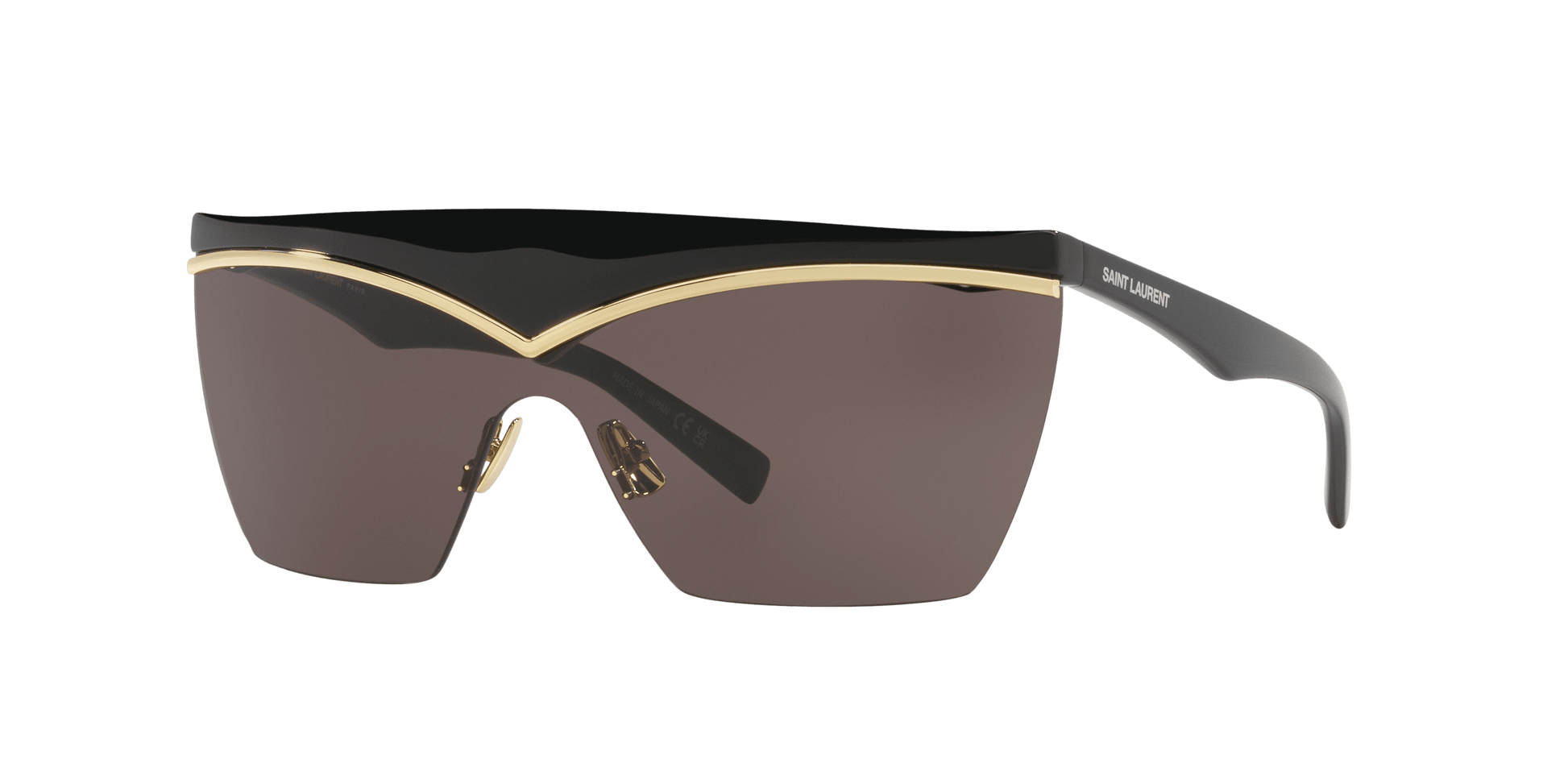 Embrace the spirit of a mask with the Saint Laurent SL 614, a new irregular shape that celebrates freedom. This iconic style is reinvented in black and features integrated temples for a modern touch. The perfect blend of vintage allure and contemporary design makes this pair an instant icon.