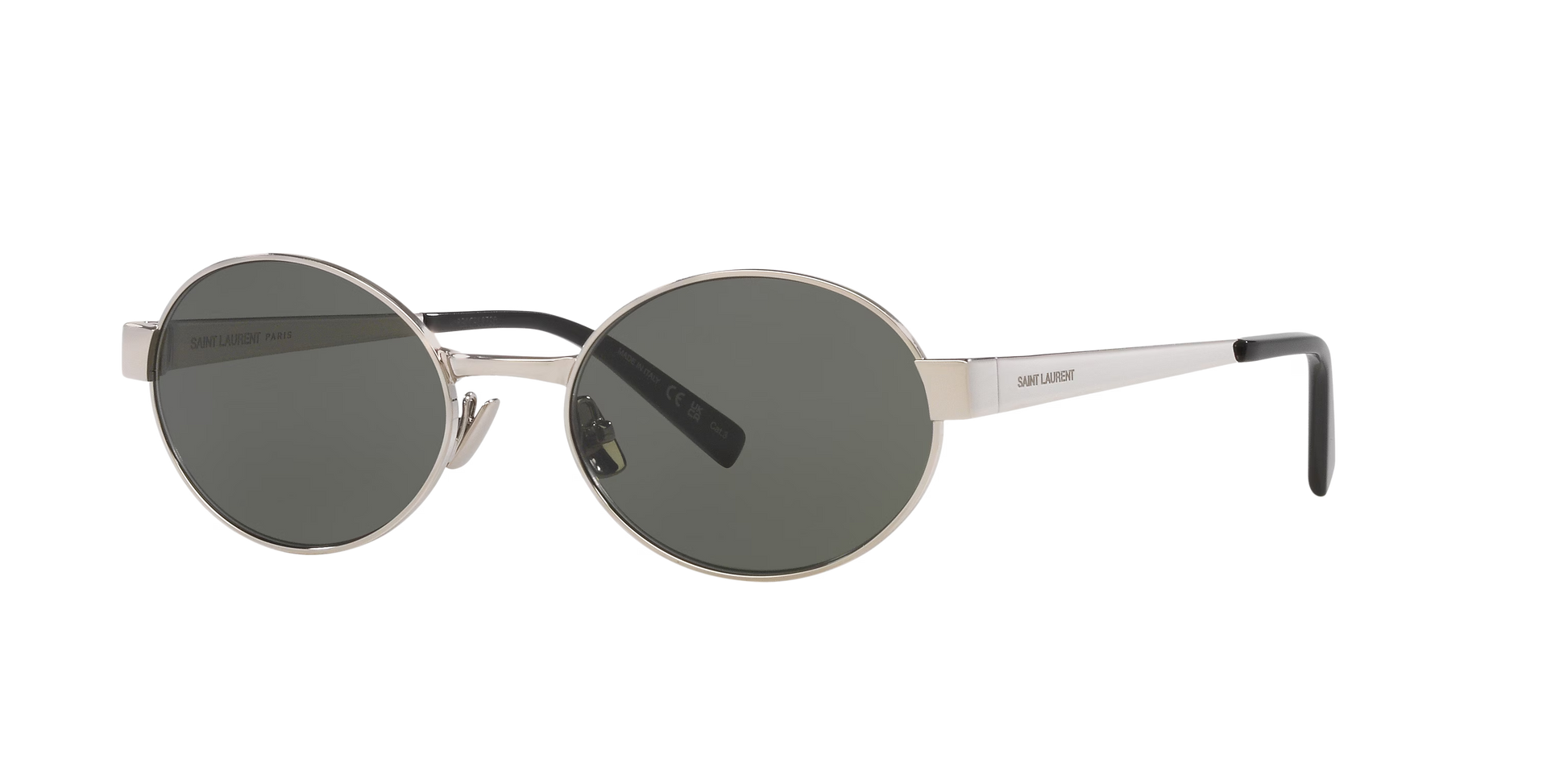 Taking the iconic metal frame to new heights, Saint Laurent introduces the SL 692. Crafted from premium metal, this oval-shaped pair of shades features solid grey lenses and a silver tint on the front and temples. The refined craftsmanship is complemented by an understated yet sophisticated design that will add an element of timeless elegance to any outfit.