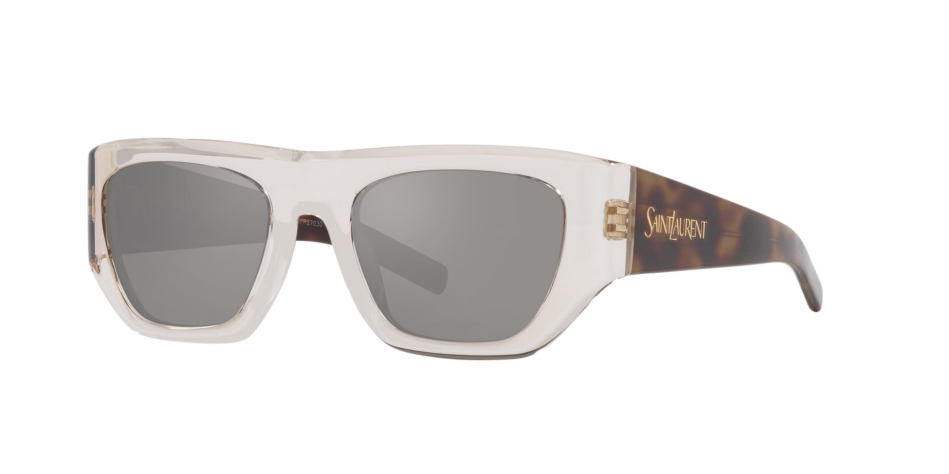 Experience the epitome of style with the Saint Laurent SL 740 sunglasses, a must-have accessory for any fashionista. The full silver lenses exude sophistication, while the light brown frame adds an understated yet elegant touch. These rectangular frames are crafted from quality materials and offer both comfort and durability. Elevated by a polished finish and its iconic brand detailing on the temples, this refined pair seamlessly combines timeless appeal with contemporary flair.