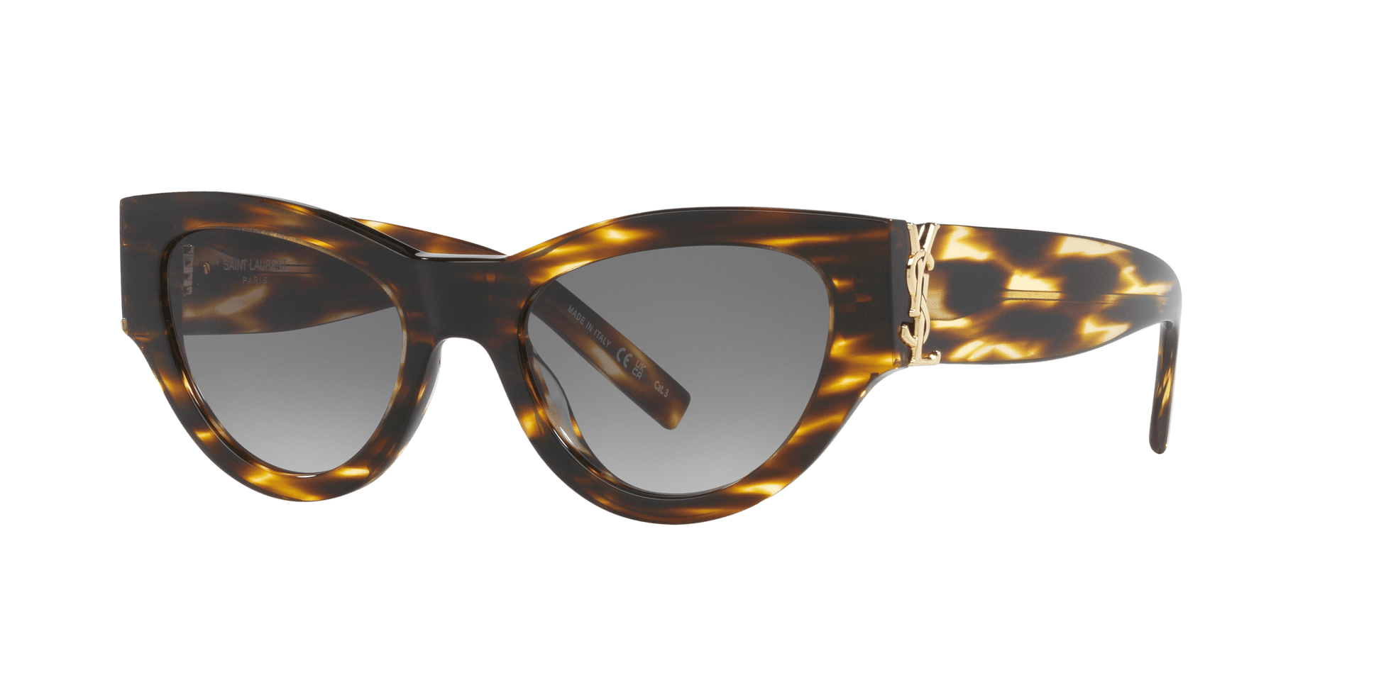 Elevate your style with the Saint Laurent SL M94 sunglasses, a perfect blend of vintage charm and contemporary allure. Crafted in acetate with a tortoiseshell frame, these shades feature gradient gray lenses and a cat-eye shape for added sophistication. Embrace timeless elegance with this refined blend of past and present aesthetics.