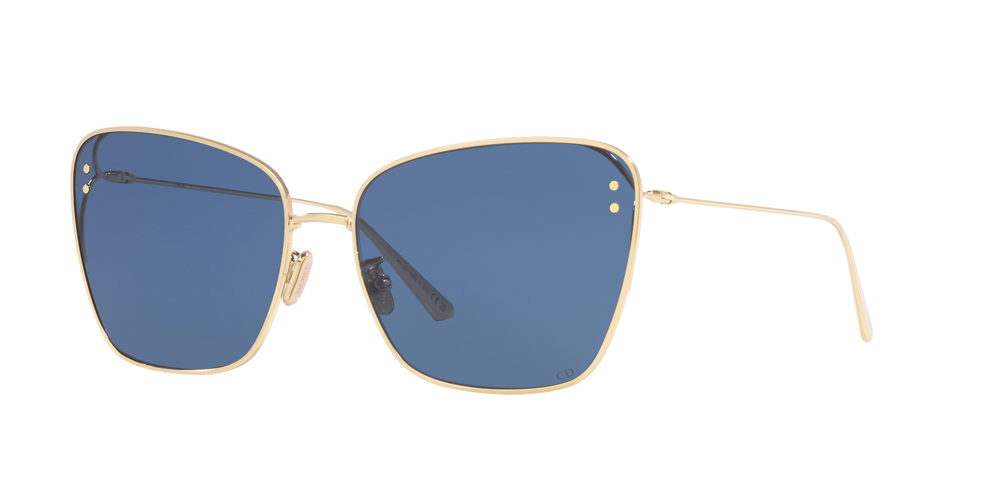 גלה את הדור החדש של משקפי השמש של Dior: DIOR MissDior B2U. מציגות עיצוב ייחודי, מסגרות פרפר מבריקות זהב אלו משולבות עם עדשות כחולות ומוצקות, המציעות גם סגנון וגם נוחות. מורם על ידי חומר המתכת וצורת הפרפר שלהם, דגם זה משדר אלגנטיות ותחכום מכל זווית.