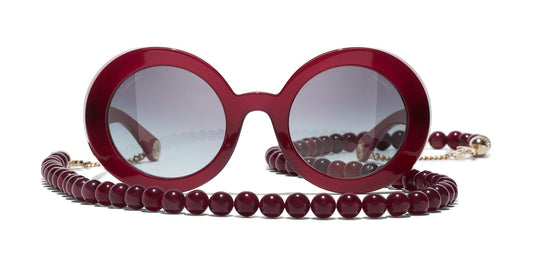 משקפי שמש של שאנל בורדו וזהב-אפור | CHANEL Round Sunglasses CH5489 Burgundy & Gold-Grey