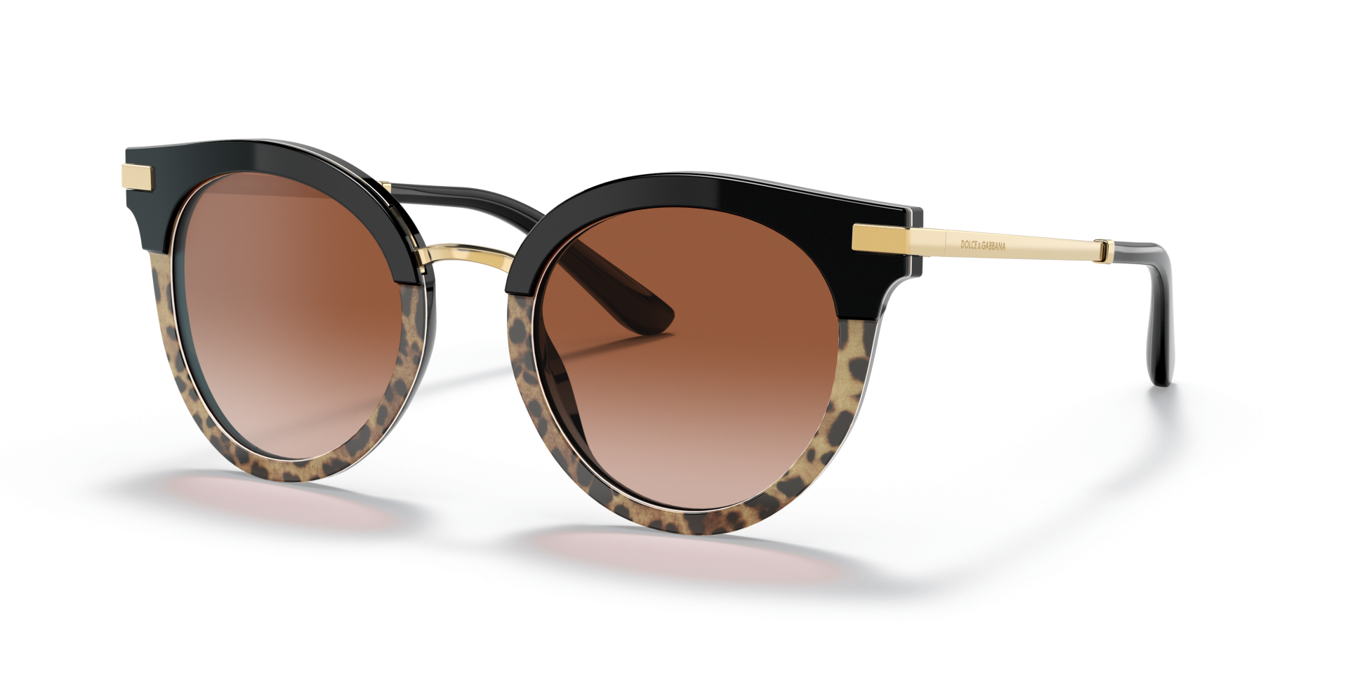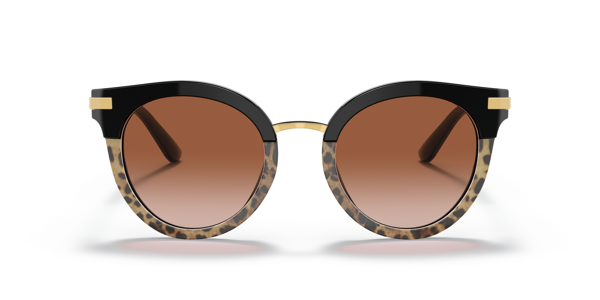 משקפי שמש של דולצ'ה וגבאנה בצבע שחור/ליאו הדפס-חום | Dolce&Gabbana DG4394 Black/Leo Print-Brown Gradient