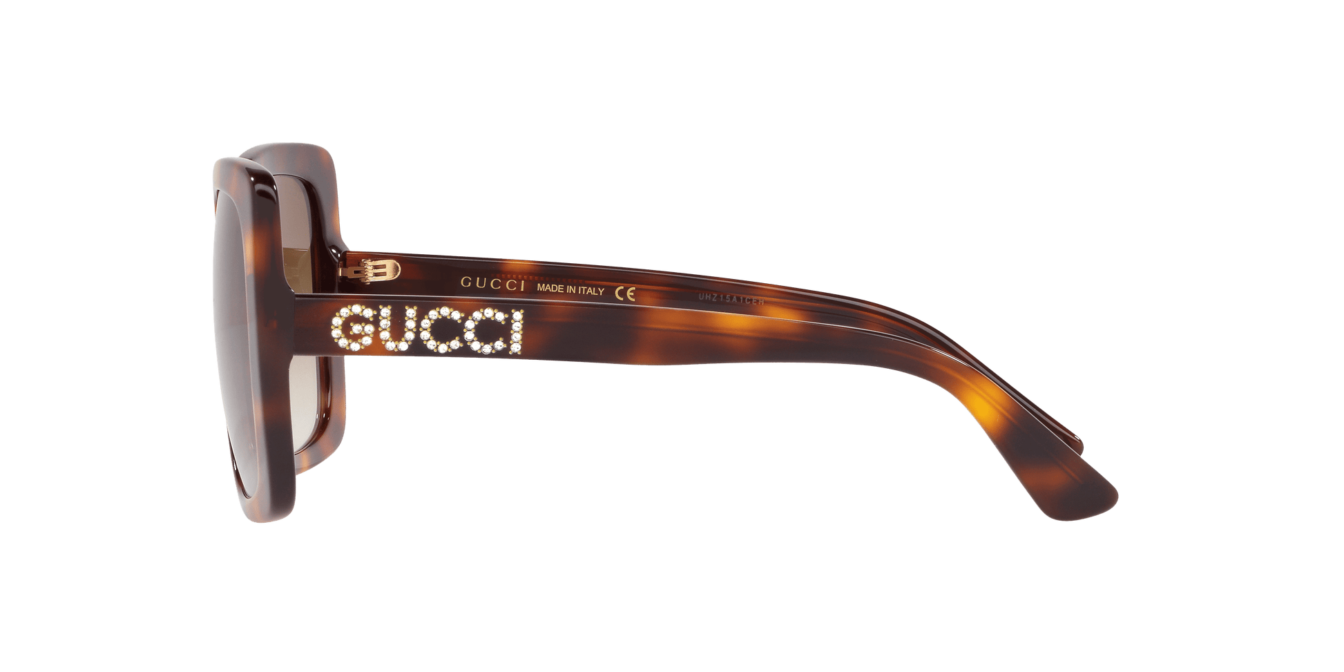 שיק נשי ומתוחכם בסגנון אצטט מרובע לוגו גבישי גוצ'י על הרקות בהשראת קליפסים אופנתיים לשיער משנות ה-80. שחור קלאסי והוואנה אצטט משולבים עם עדשות בגוונים צבעוניים וקלאסיים